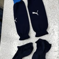 今回はサッカーのソックスをセパレートストッキングとショートソックスに切り離すご依頼です。 切り口をライターで焙るなどの工夫をしている方もおられるそうですが、当店では糸でしっかり縫い込みます。