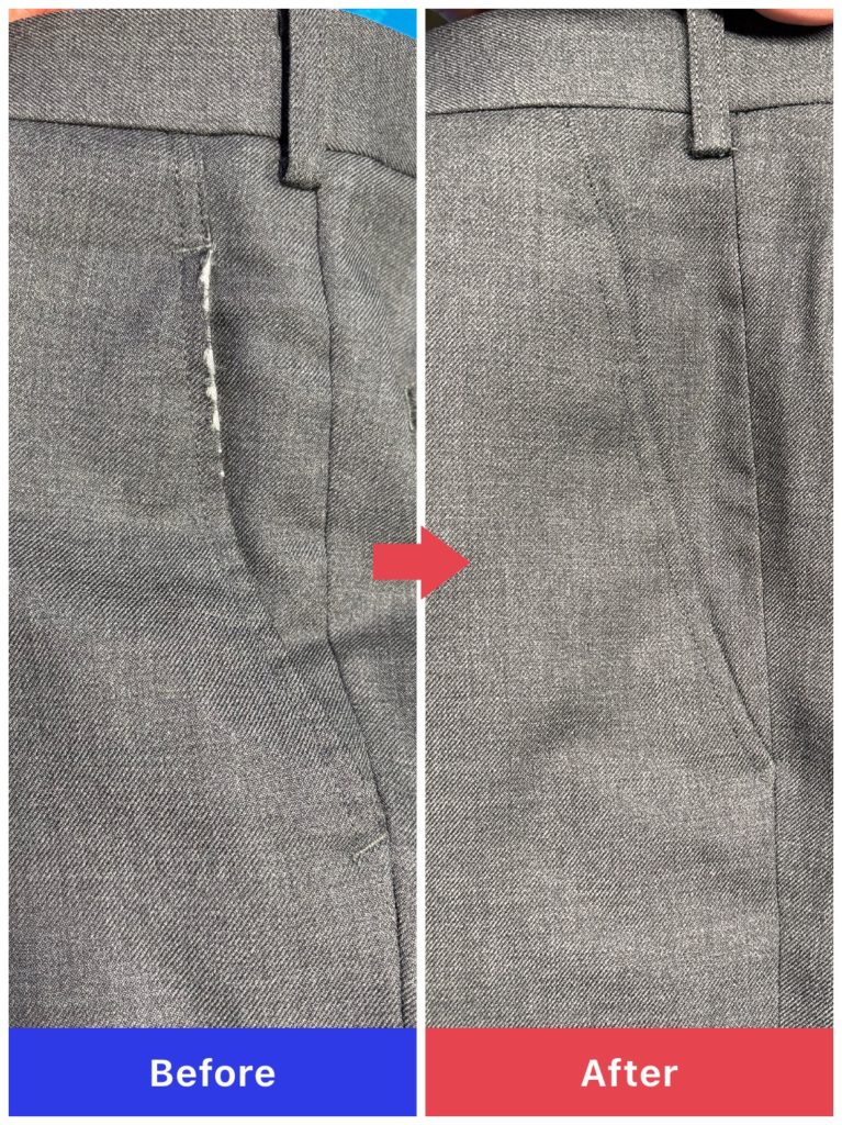 擦り切れ部分をギリギリ内側にずらして補強しました。